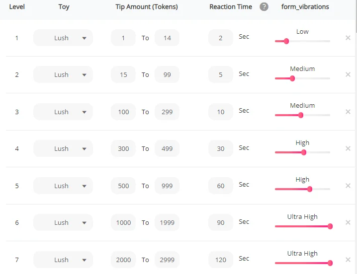 Levels are like this, And you can get the lovense-control.